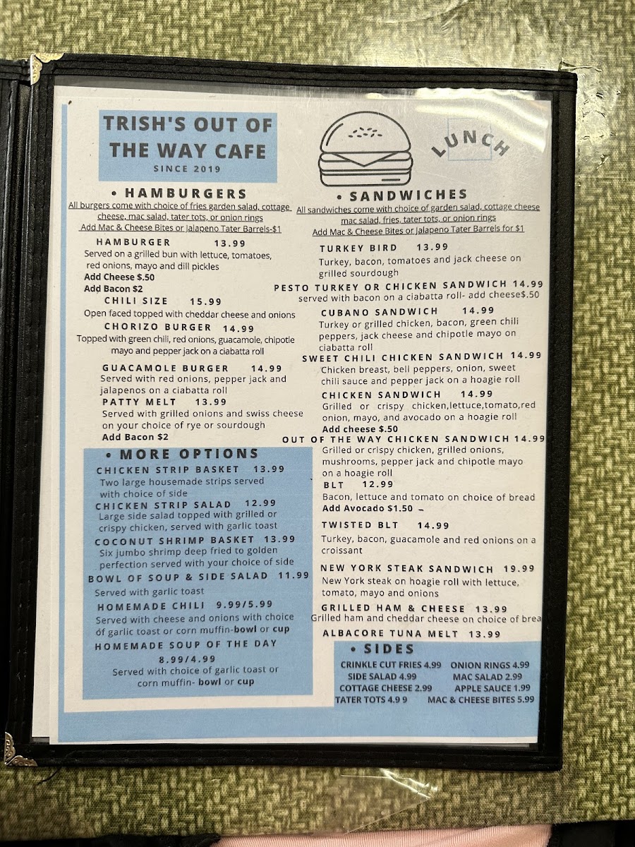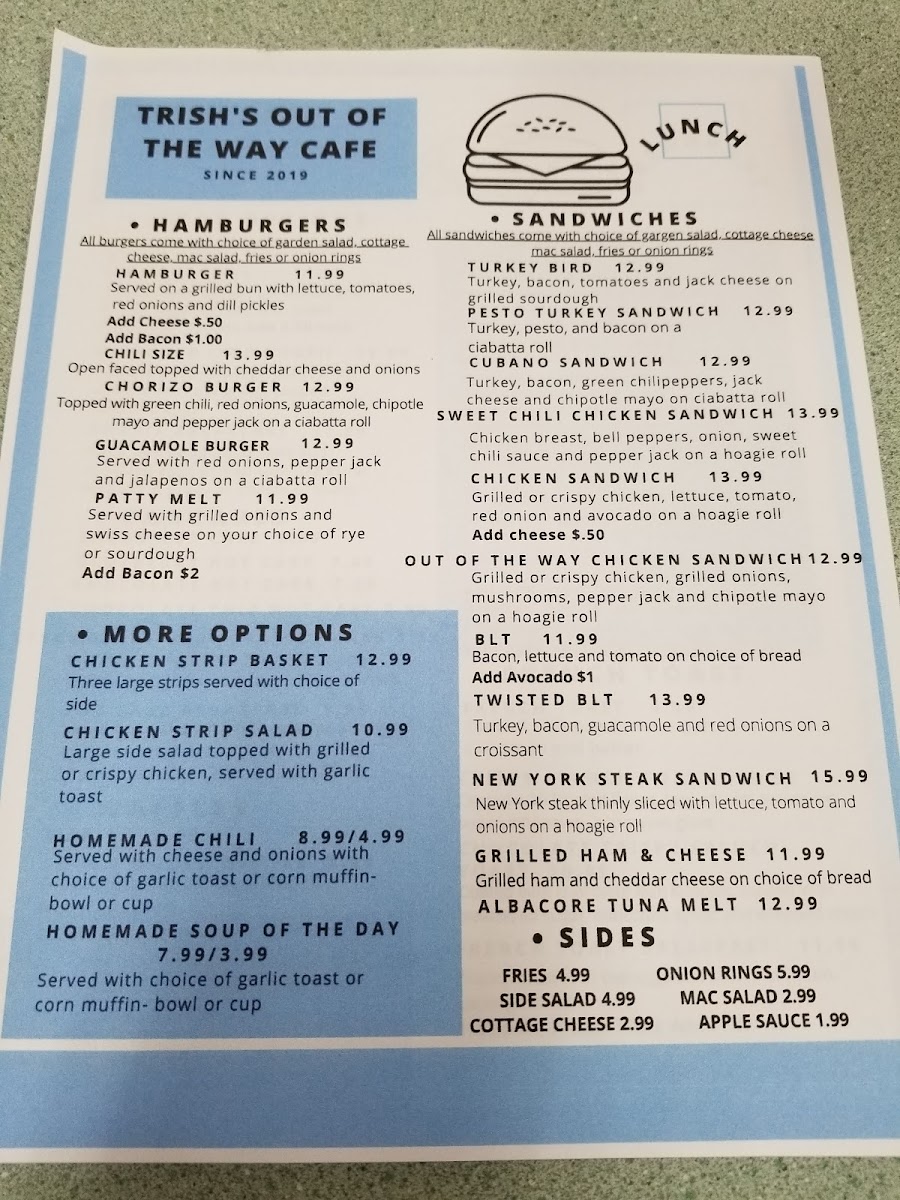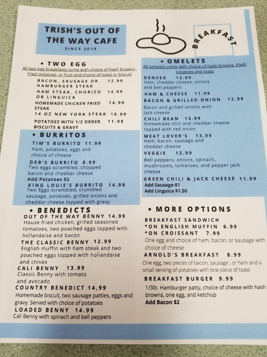 Trish's Out-of-the Way Cafe Menu (Update 2025)