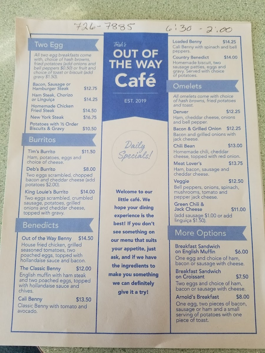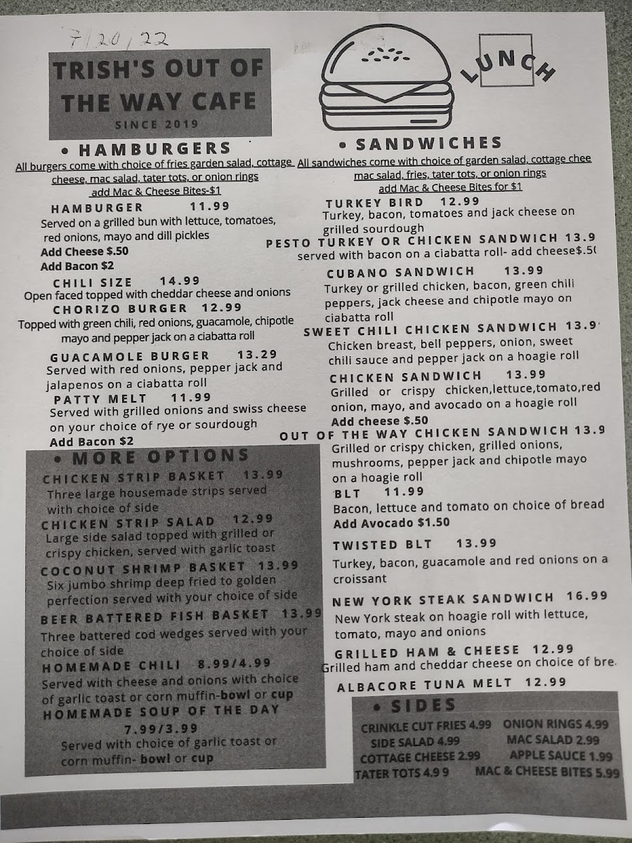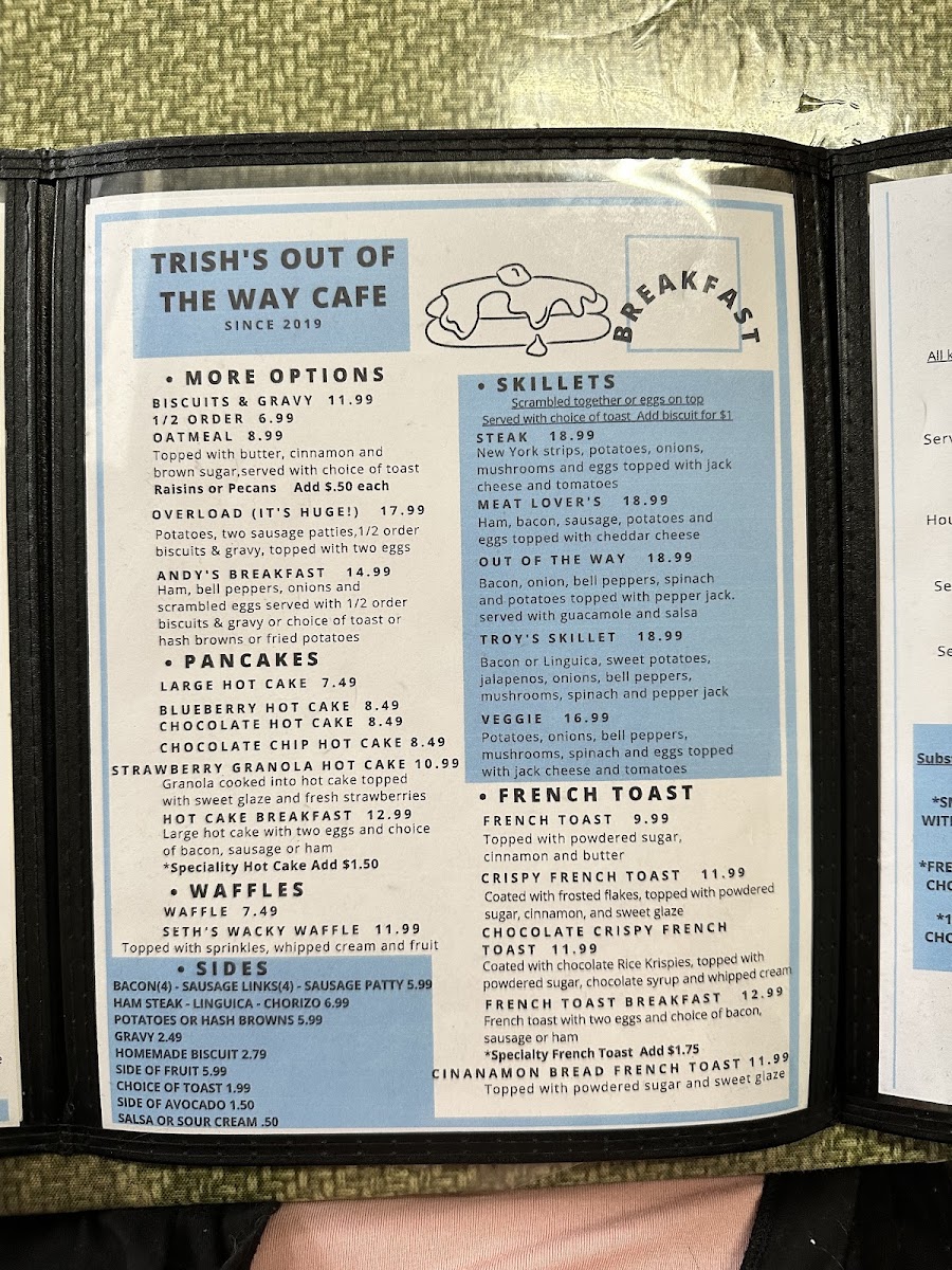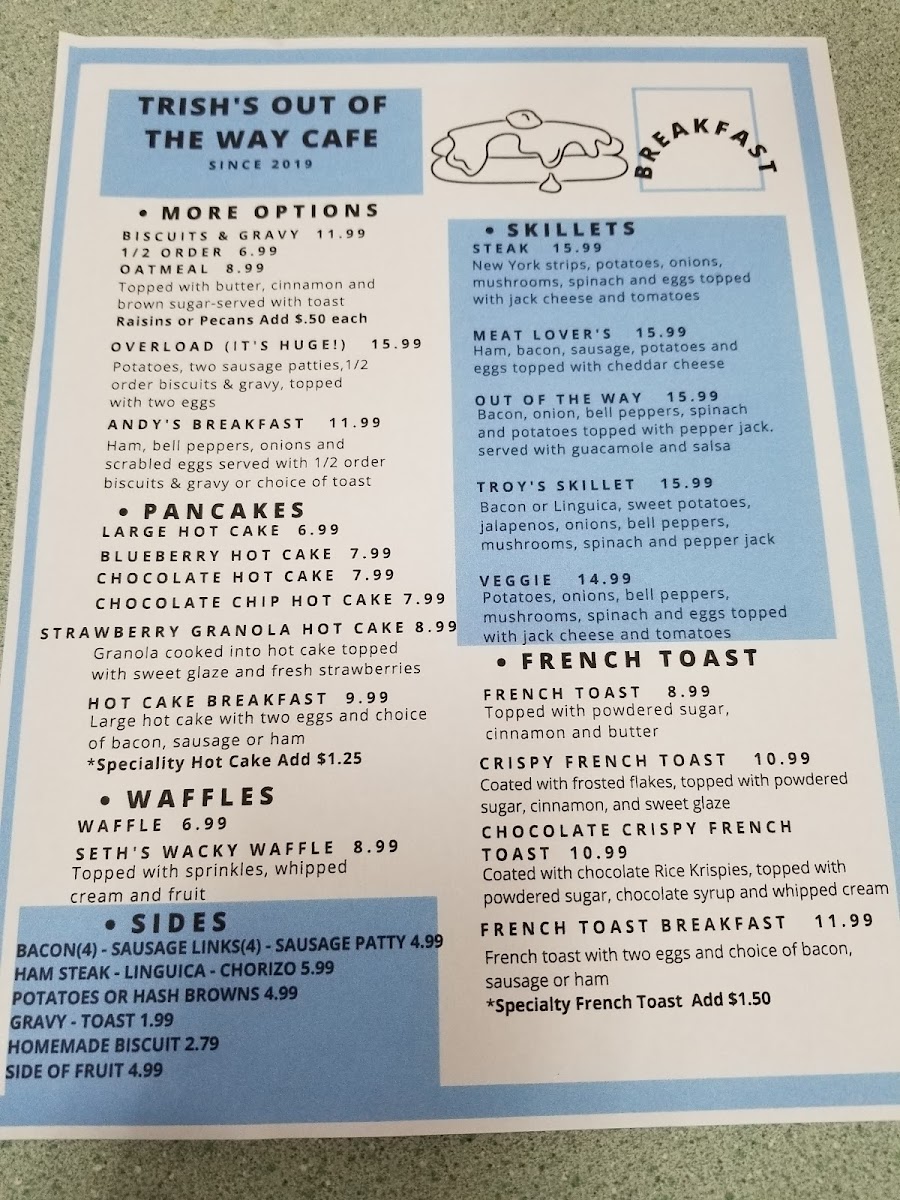 Trish's Out-of-the Way Cafe Menu (Update 2025)